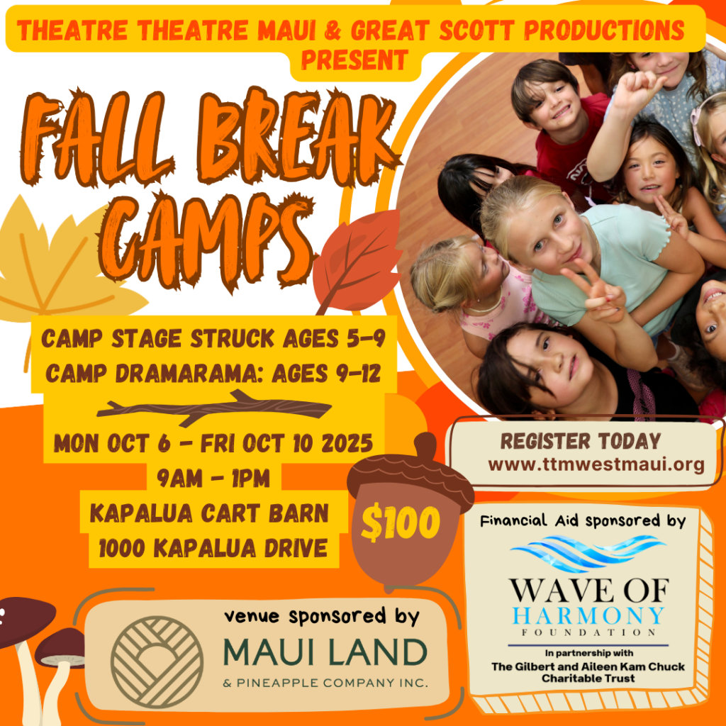 For camp information contact Kristi Scott (415)595-3705 or dramaqueen.maui@gmail.com