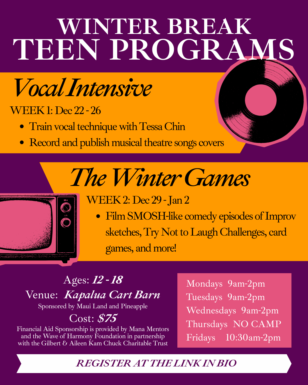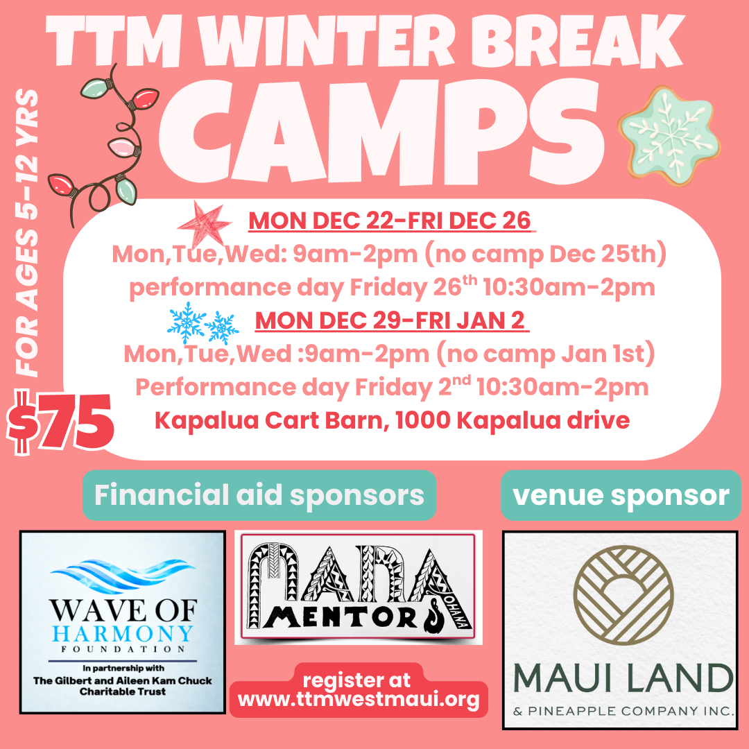 Financial Aid Sponsorship is provided by Mana Mentors and the Wave of Harmony Foundation in partnership with the Gilbert & Aileen Kam Chuck Charitable Trust. – please contact admin@ttmwestmaui.org for an application or download the application here
